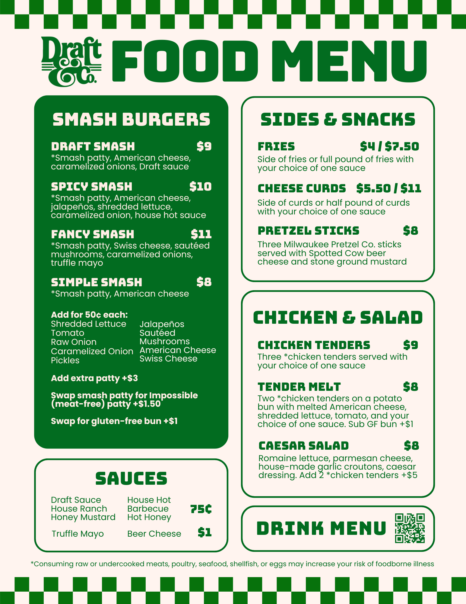 Draft & Co. adds “company” to Draft & Vessel. We’re bringing a new concept in a new space at Vel R. Phillips Plaza in downtown Milwaukee. 32 lines of always-rotating draft beer, cocktails, wine, and cider means something new every time you visit, paired with a simple, focused food menu. A variety of non-alcoholic, gluten-free, and THC beverages are also available. Live drink menu below.
